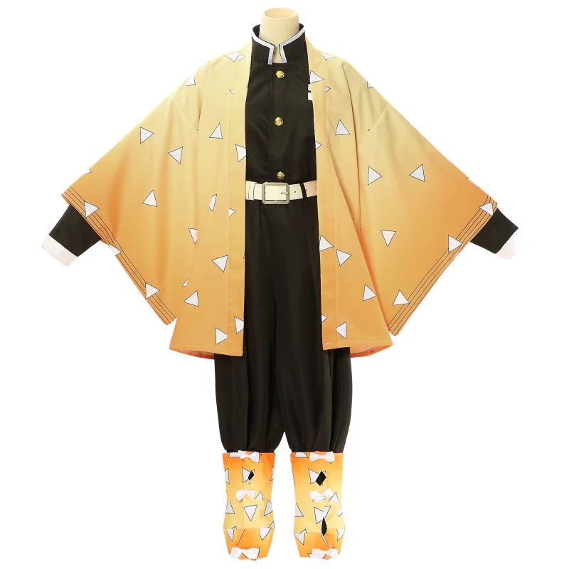 Костюм для косплея из аниме рассекающий демонов, кимоно из агатсумы Зеницу для взрослых и детей, униформа на Хэллоуин