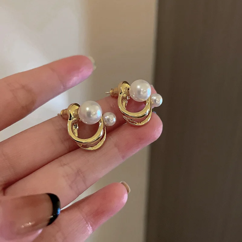 Новые простые серьги-гвоздики в стиле знаменитостей с золотым жемчу...