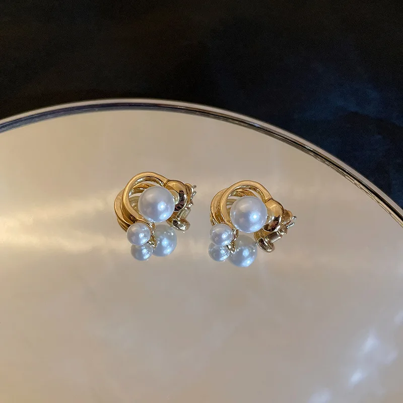Женские серьги-гвоздики с искусственным жемчугом, без проколов