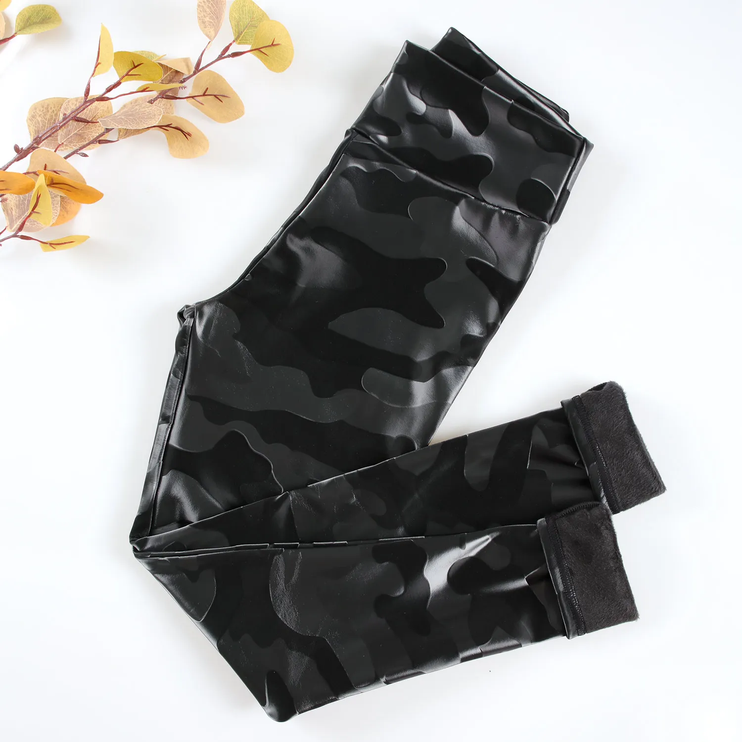 Пикантные женские леггинсы NORMOV из искусственной кожи, зимние теплые облегающие леггинсы с высокой талией и камуфляжным принтом, леггинсы с эффектом пуш-ап, тонкиеплотные бархатные штаны