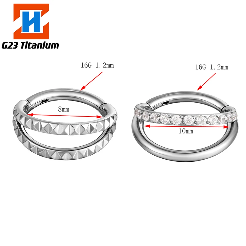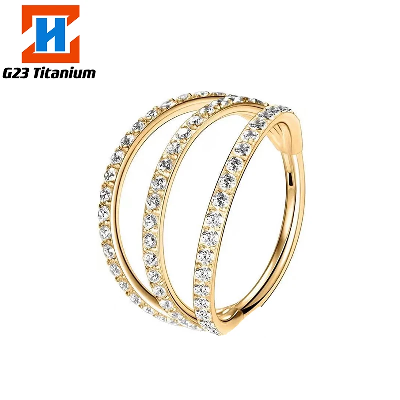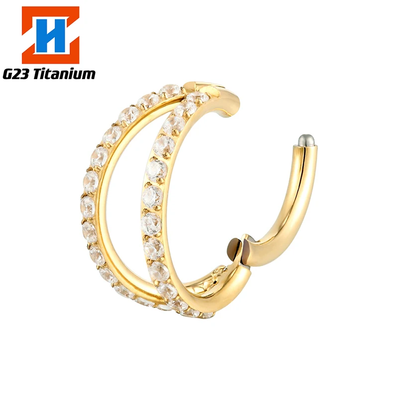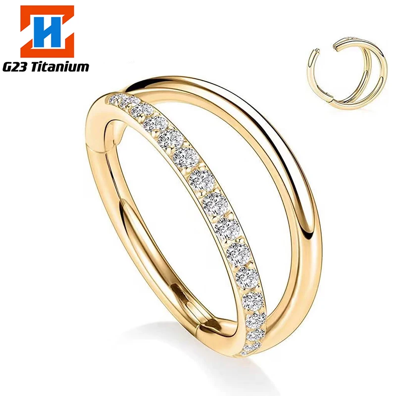 G23 титановые серьги для пирсинга циркониевые шарнирные Сегменты 2 вентиляторы дизайн кликер хрящевая спираль клипсы для пирсинга ювелирные изделия
