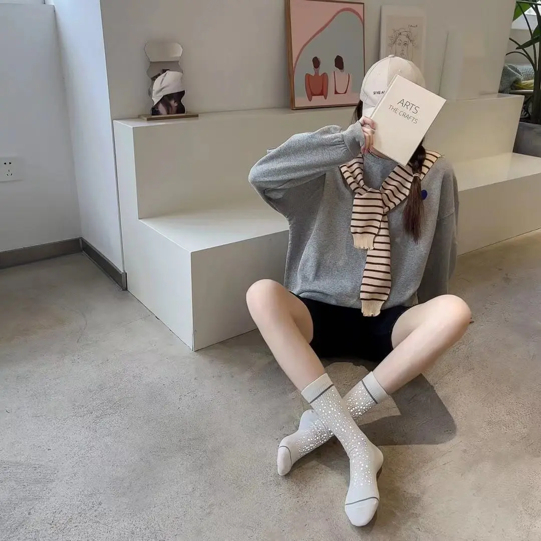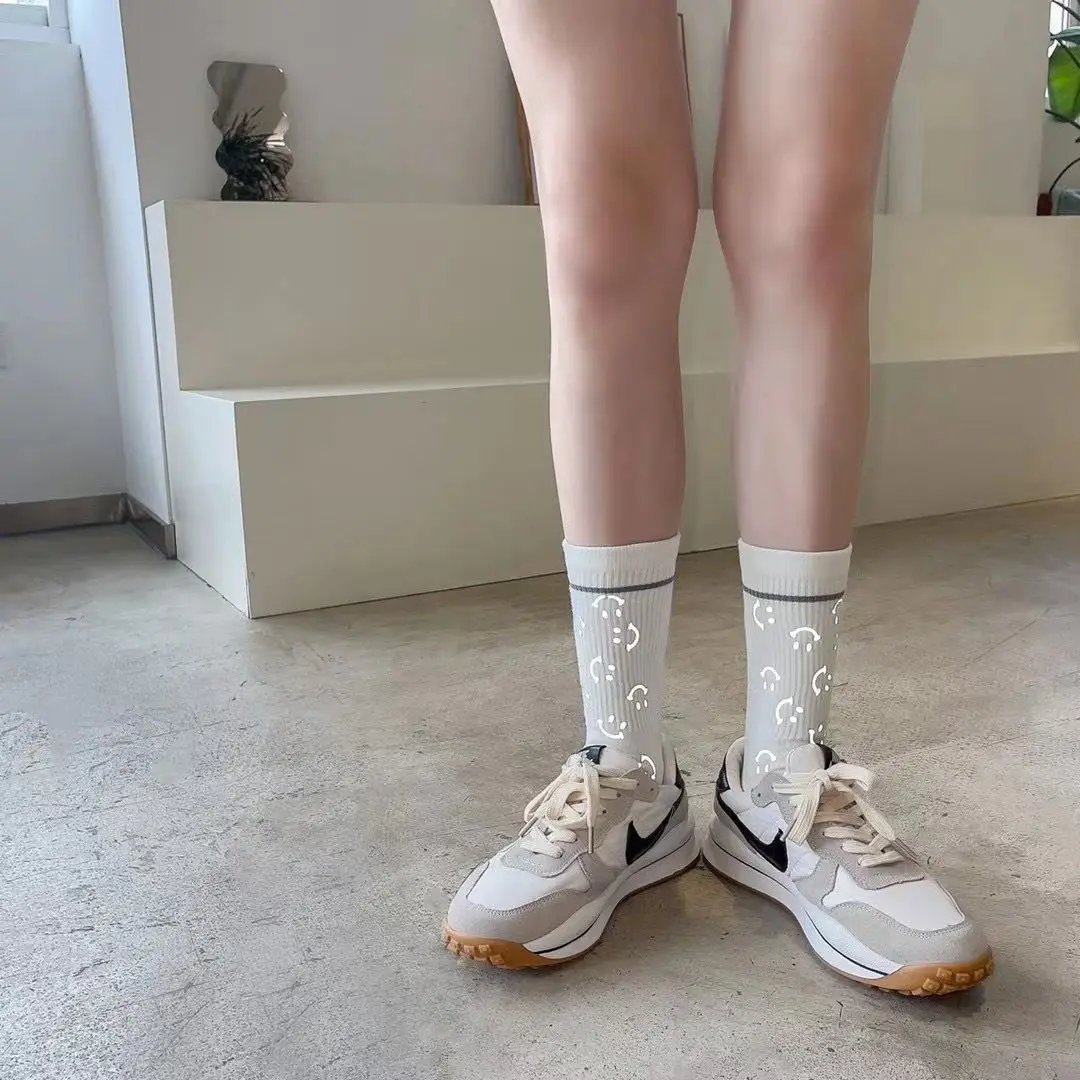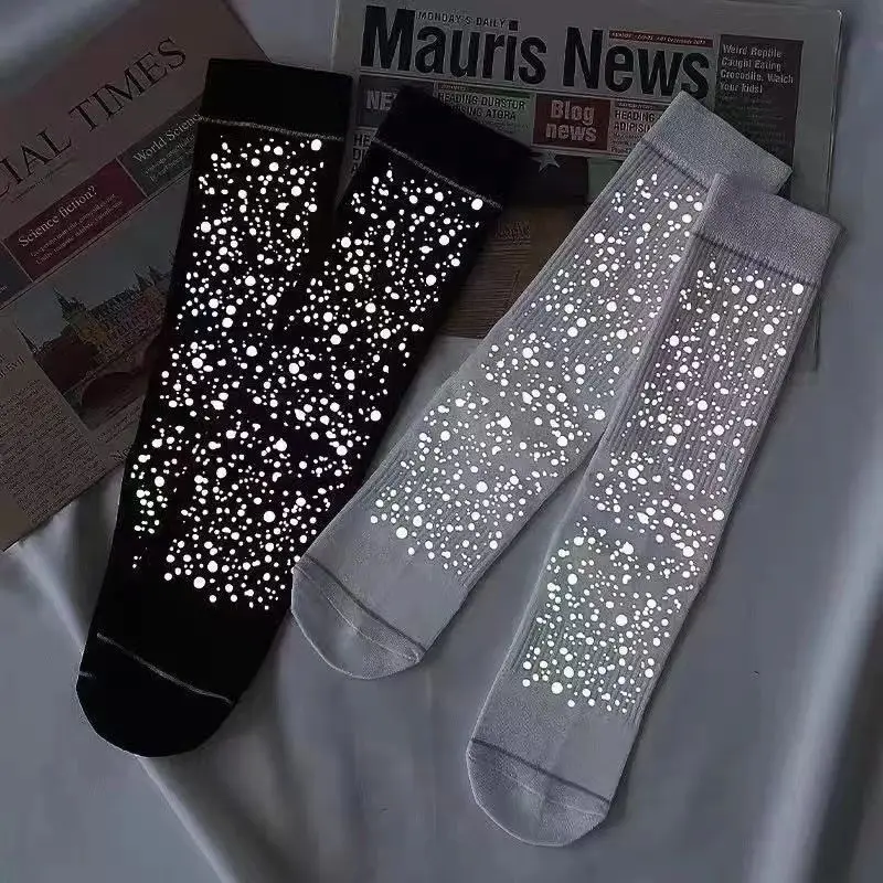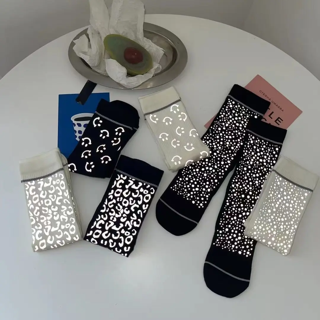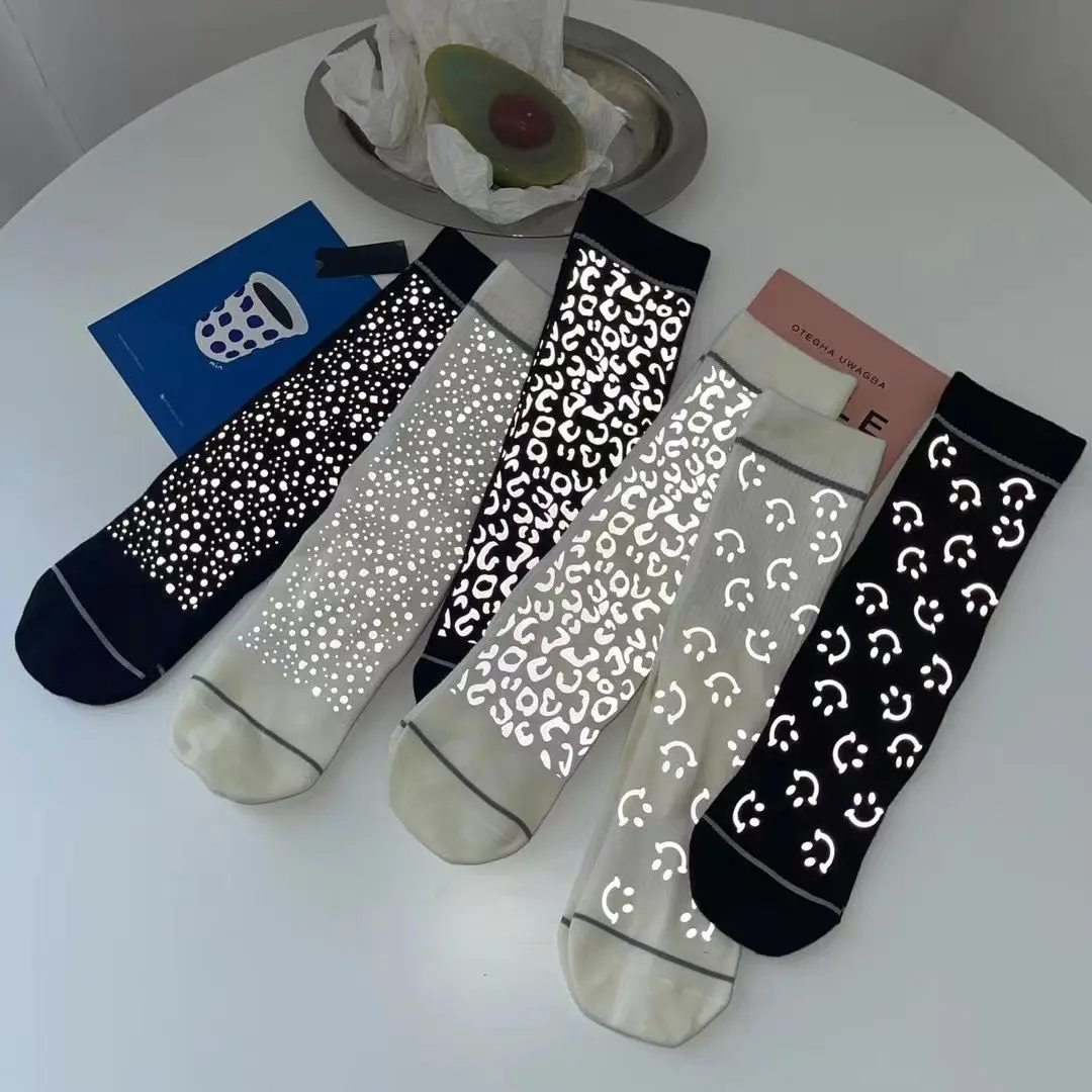 Новинка 2022, модные Светоотражающие хлопковые носки, женские светящиеся ночные уличные носки в стиле хип-хоп для девушек, блестящие длинные белые носки с принтом в горошек