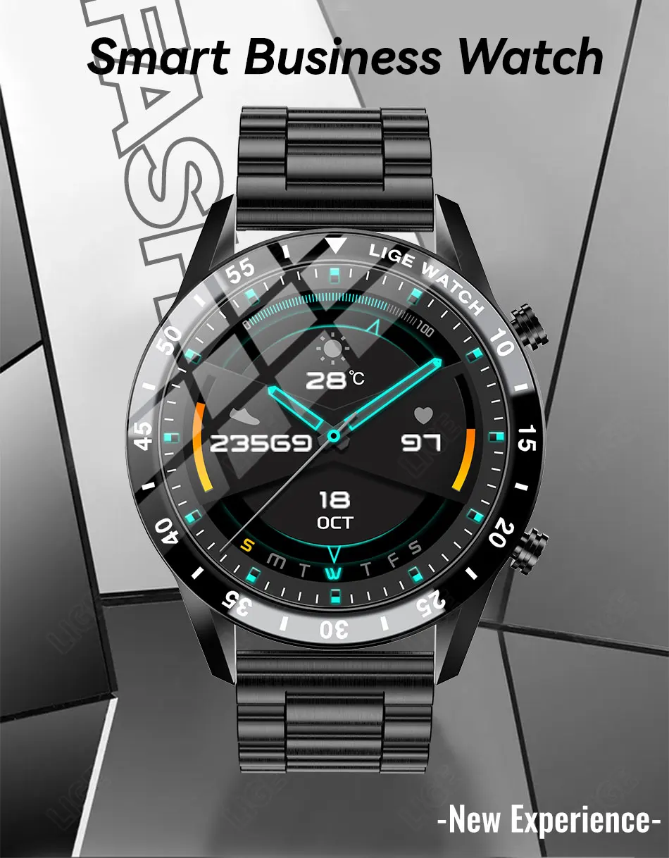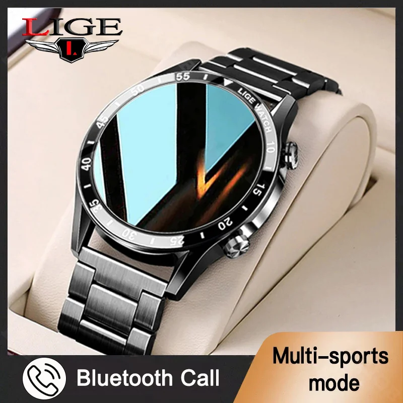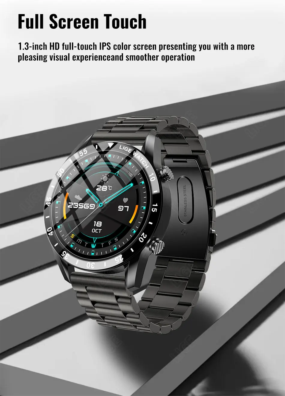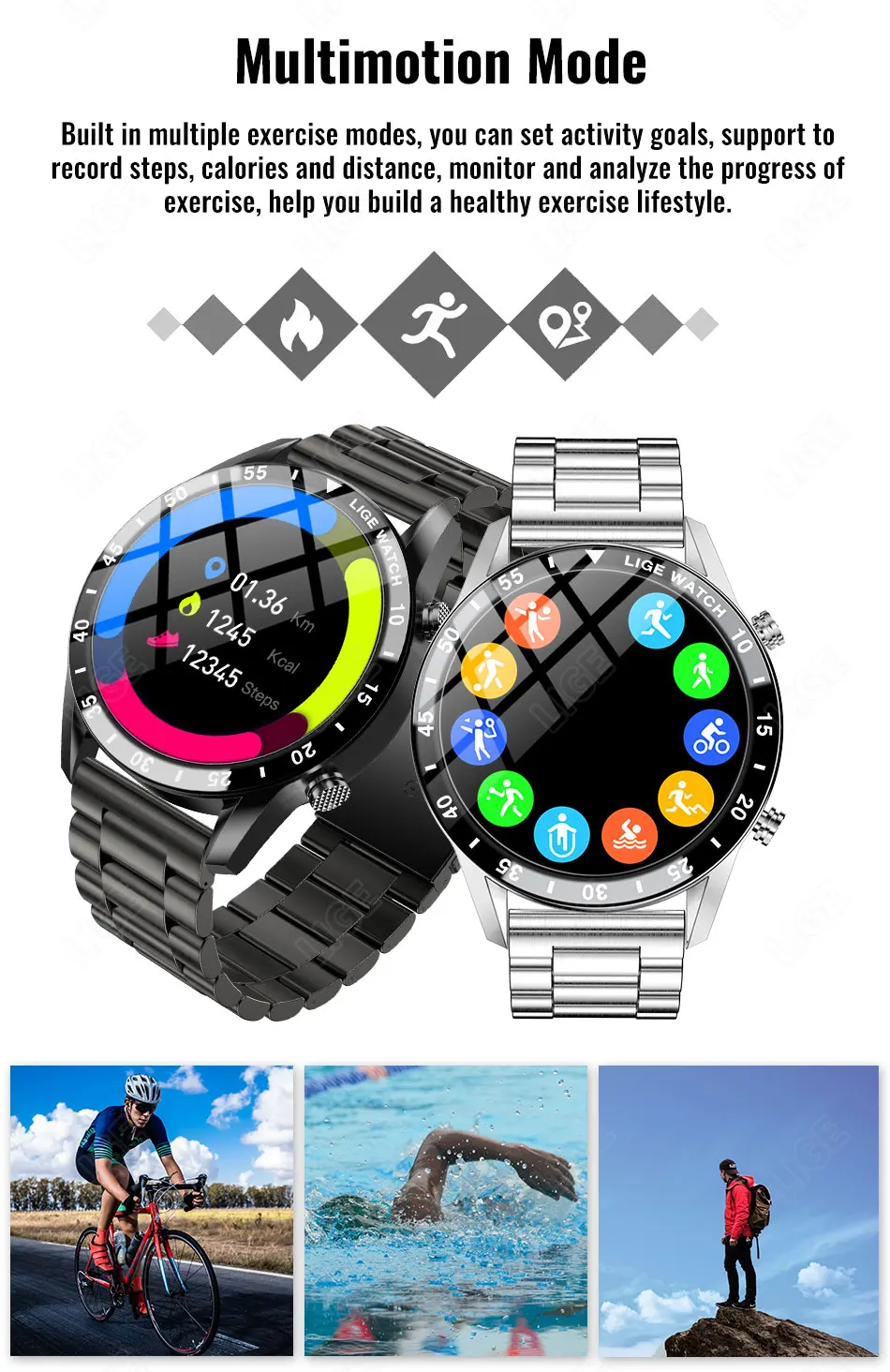 Смарт-часы LIGE мужские сенсорные с Bluetooth и поддержкой звонков