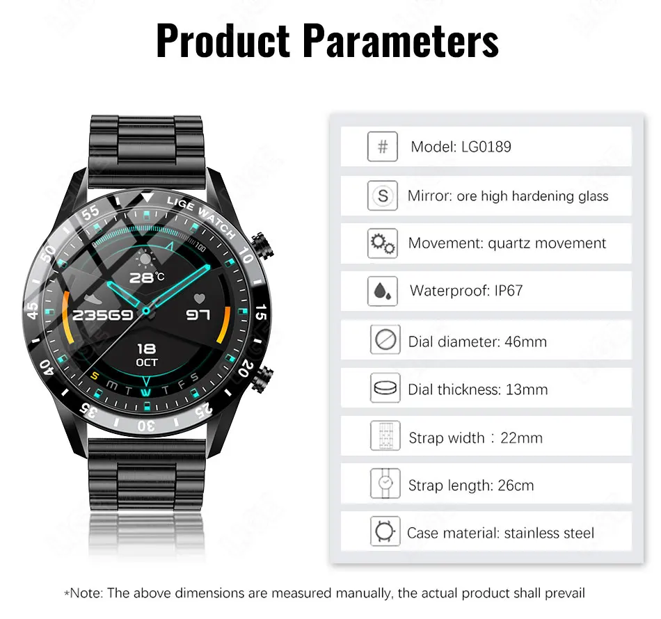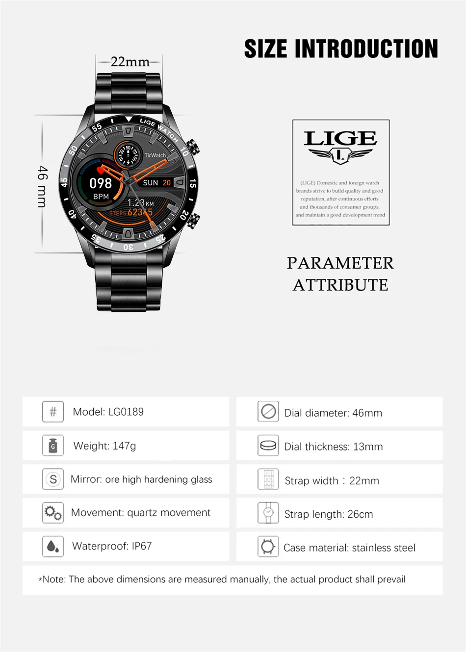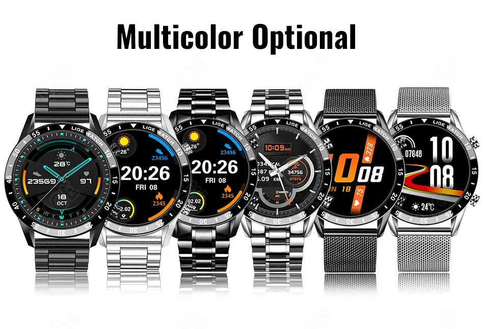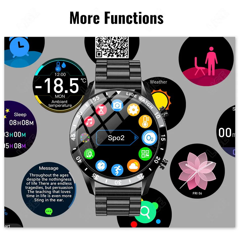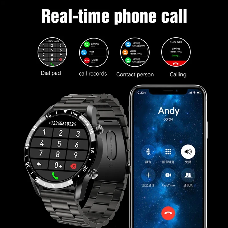 Смарт-часы LIGE мужские сенсорные с Bluetooth и поддержкой звонков