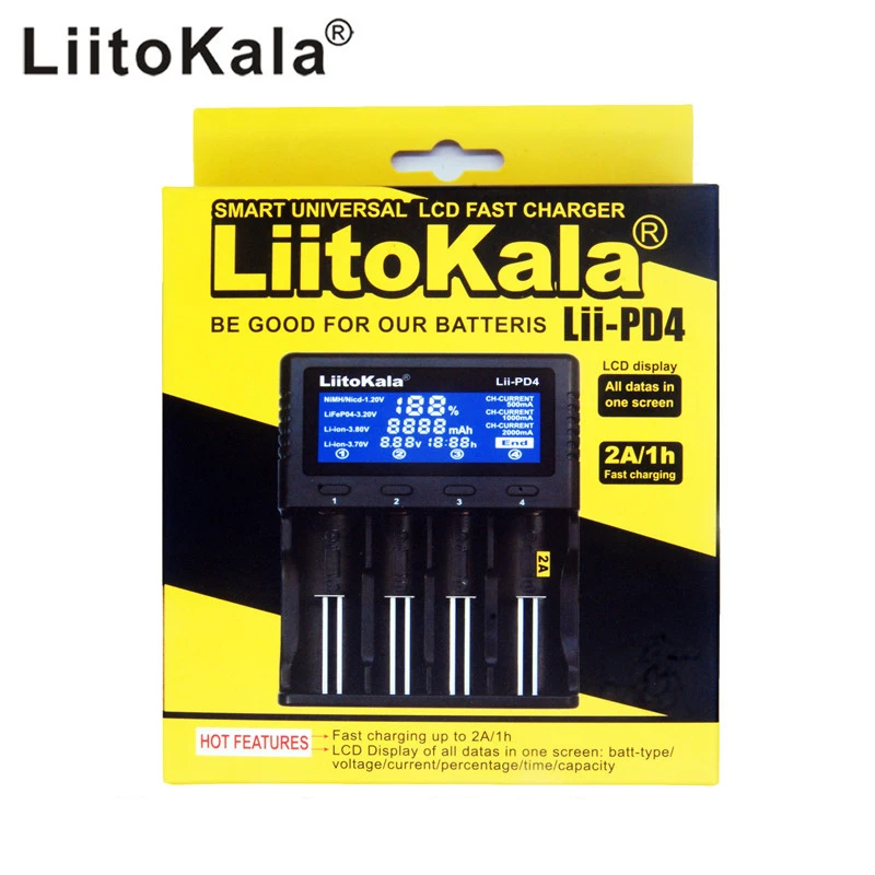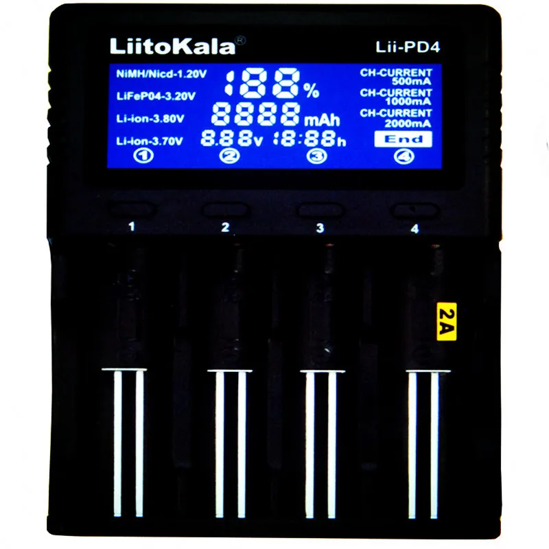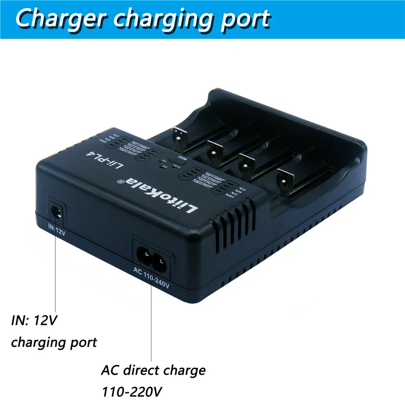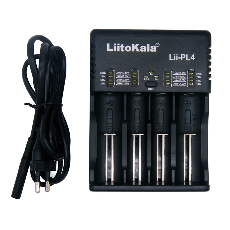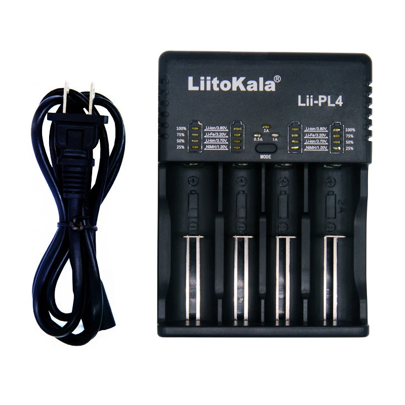 Lii-PL4-это новое многофункциональное умное зарядное устройство с 4 слотами, запущенное liitokala. Низкая цена, в то время как четыре типа батарей могут быть применены (li-ion 4,2 v/4,35 v Ni-MH 1,2 v li-fe 3,6 v), и различные размеры батарей.Технические параметры зарядного устройства:Входная мощность: ac 110-240 В 50/60 Гц/dc 12v-1aВыход напряжение: dc 4,2 v для батарей Li-Ion (литий-ионных)Dc 4,35 v для imrDc 3,65 v для lefepo4Dc 1,48 v для nimh / ni-cd Выходной ток: li-ion / imr / lifepo4 2000ma * 1 (только четвертый канал),1000мА * 2,500 мА * 3500 мА * 4Nimh / nicd: 1000ma * 2, 500ma * 3 500ma * 4 Постоянный ток, нагрузка постоянного напряжения, Ток Отключения: <100 м a;Внешний ток в режиме ожидания: <15.0ма;Совместимые типы и модели аккумуляторовLi-ion / imr / lifepo4: 26650,21700,18650, 18490, 18350, 17670, 17500, 16340 (RCR123), 14500, 10440NiMH / Cd: Aa, aaa, sc, cВ-шестых, размер погрузчика:133 мм x 100 мм x 35 мм (длина/ширина/высота)Вес: 175 г (включая шнур питания переменного тока)