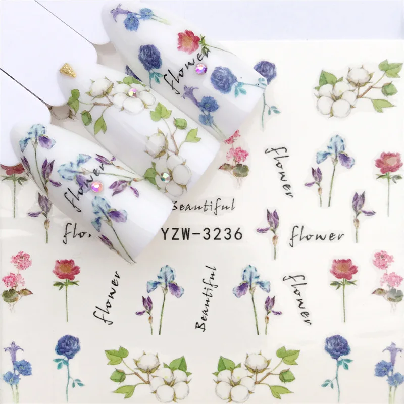 С цветочным принтом цветочный стикер наклейка на ногти водная накле...