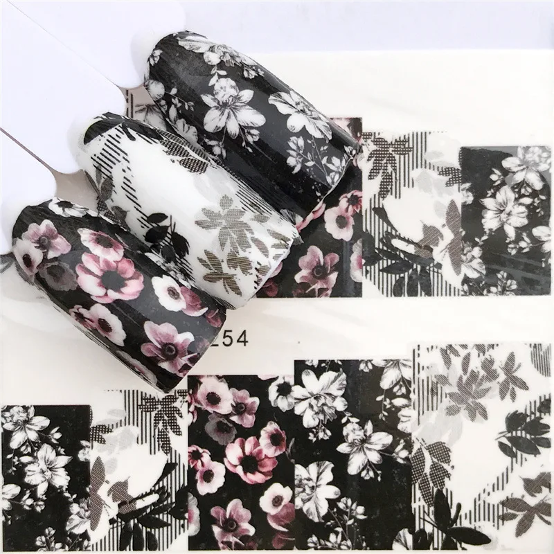 Переводные наклейки для ногтей, 1 шт., черные цветочныеЦветочные фе...