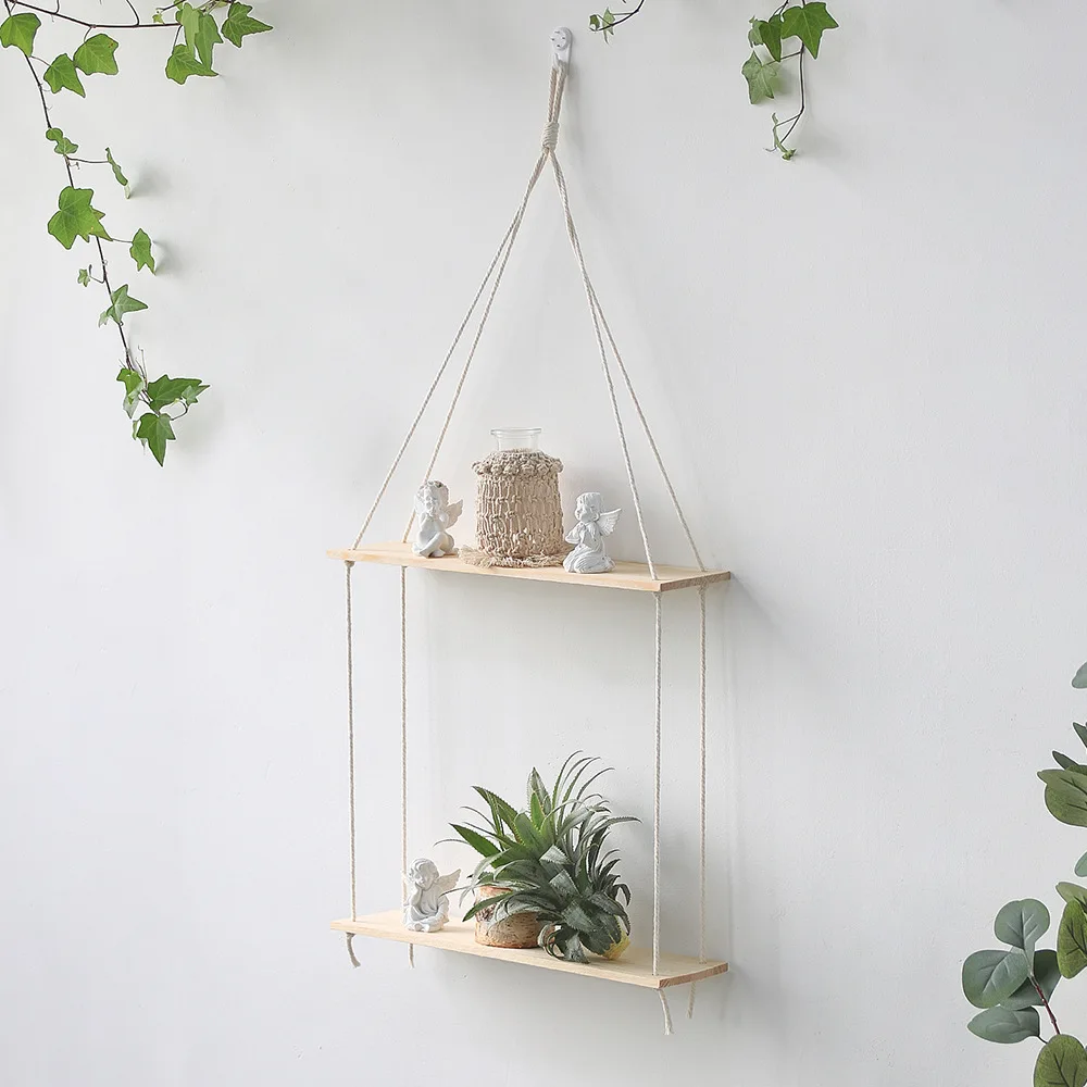 Полки для макраме для спальни, деревянные подвесные веревки, настен...