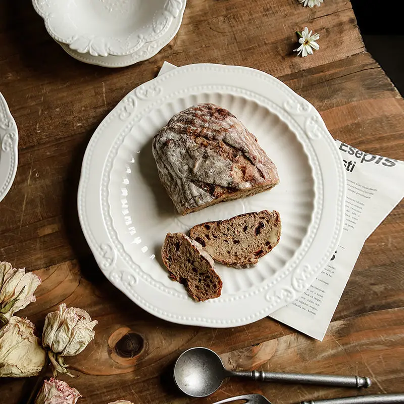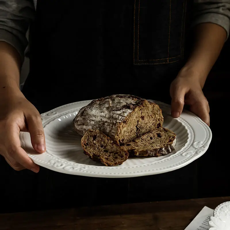Европейская белая фарфоровая тарелка с вертикальными полосками, рельефный диск, Западная зернистая миска для супа, набор посуды, блюда