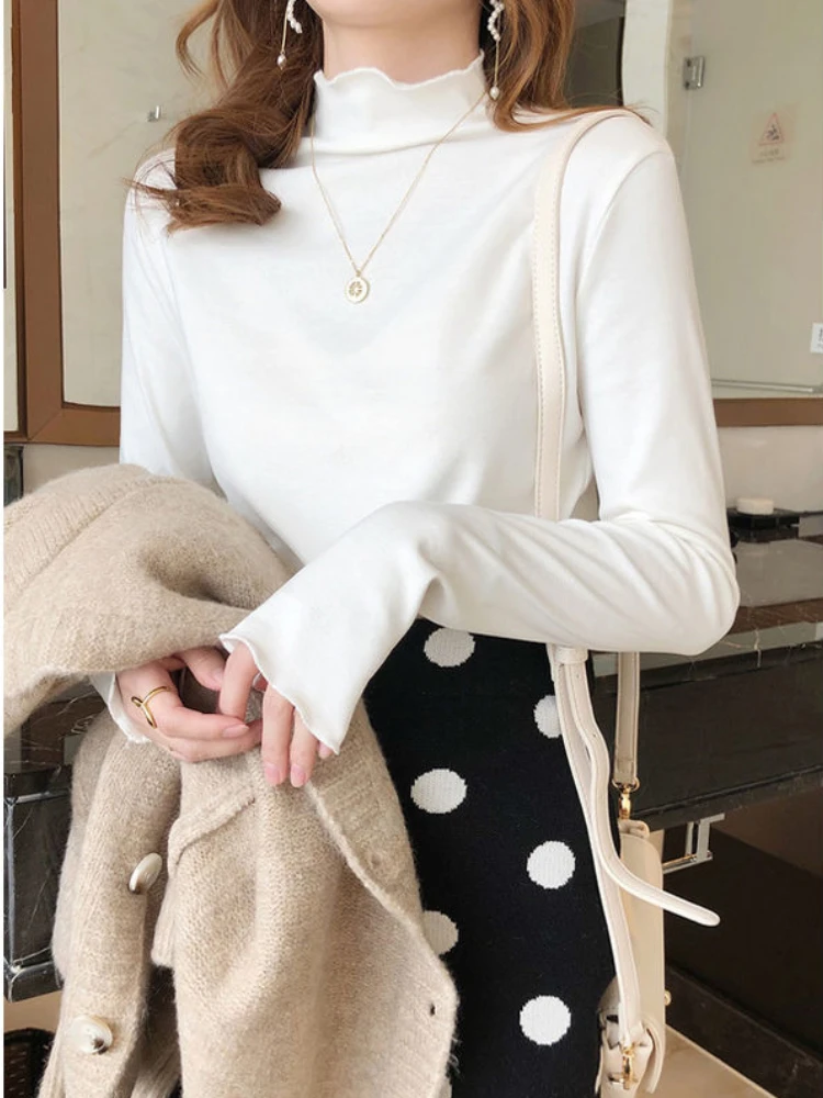 Осенне-зимняя новая небольшая рубашка с открытыми плечами и высоким...