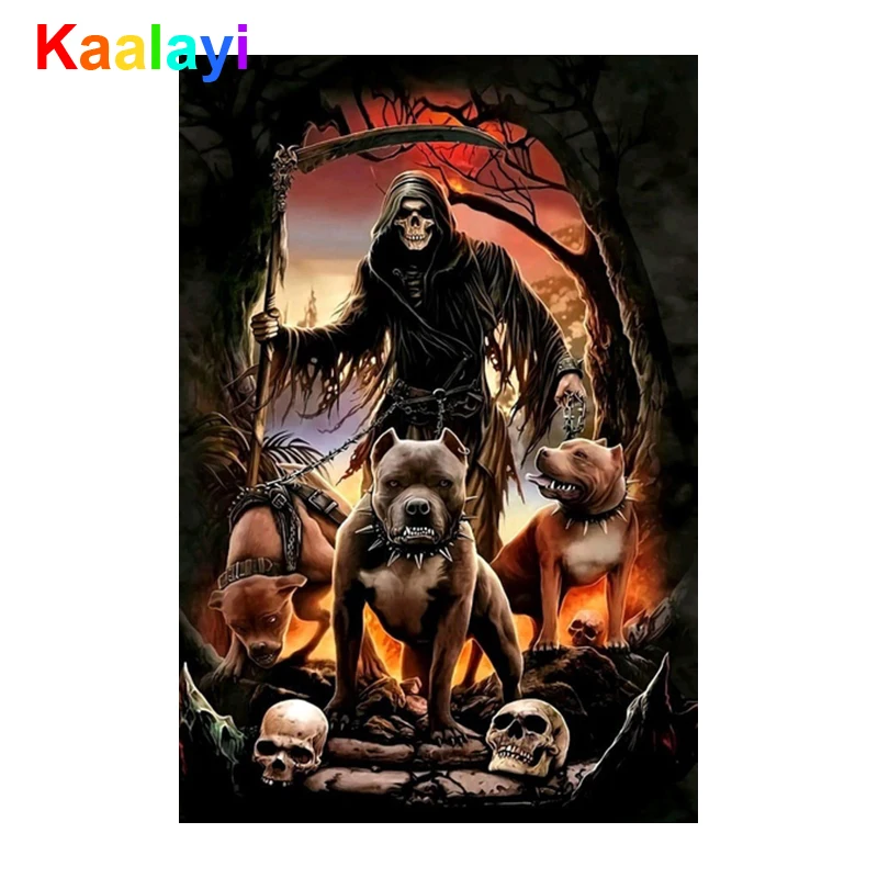 Алмазная 5D картина сделай сам на Хэллоуин, Череп, собака, полный квадраткруглый Алмазная вышивка, наборы для вышивки крестиком, мозаика, домашний декор, подарок Zs323