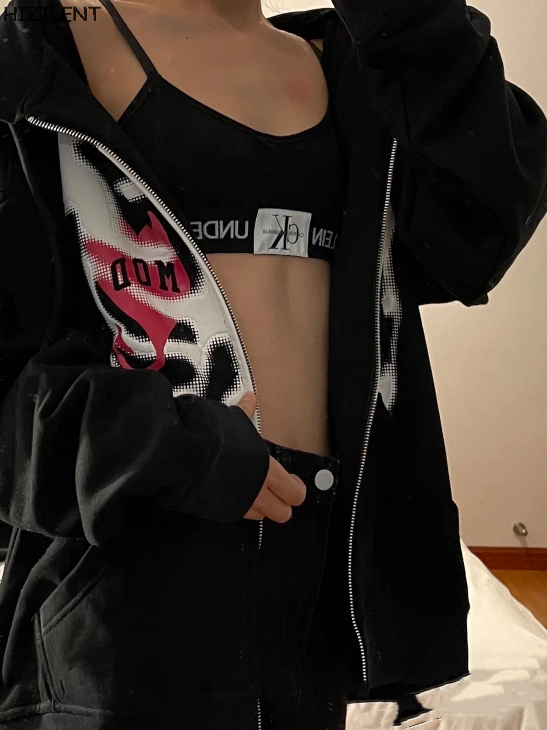 Женские толстовки в стиле Харадзюку Y2K, готический свитшот на молн...