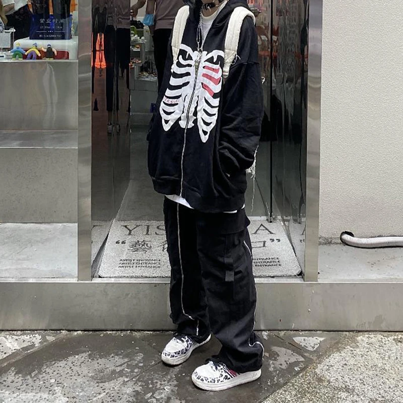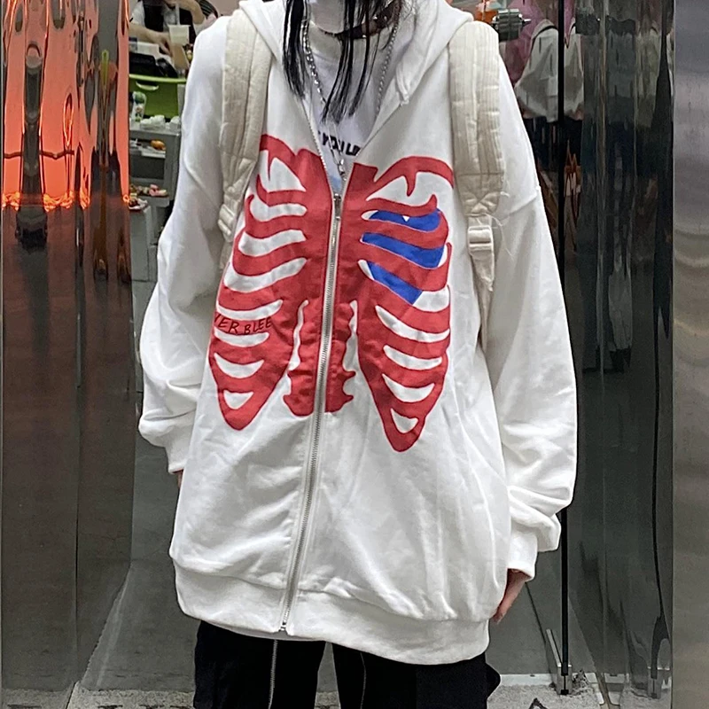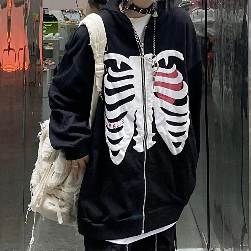 Женский свитшот на молнии, с длинным рукавом и принтом в виде скелета
