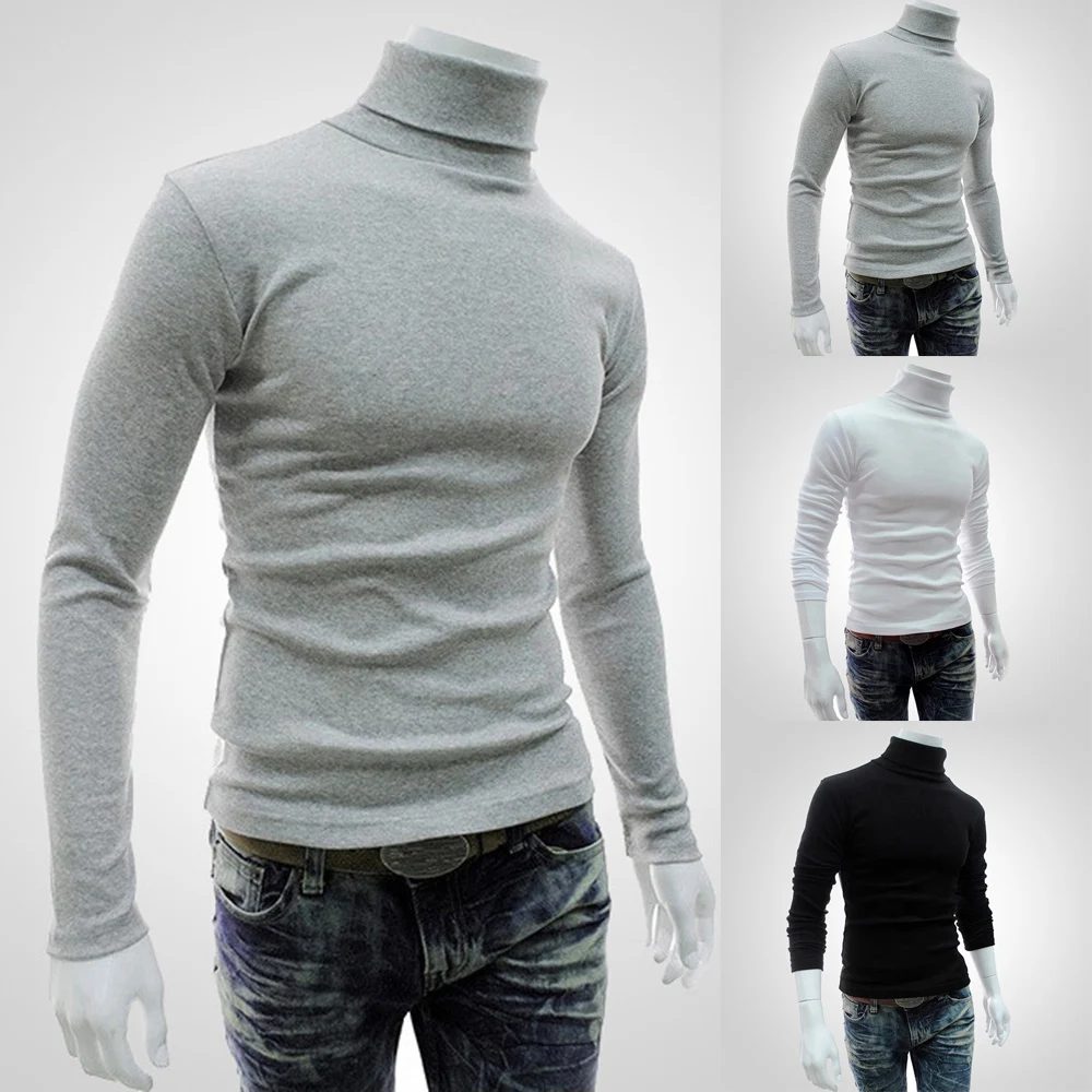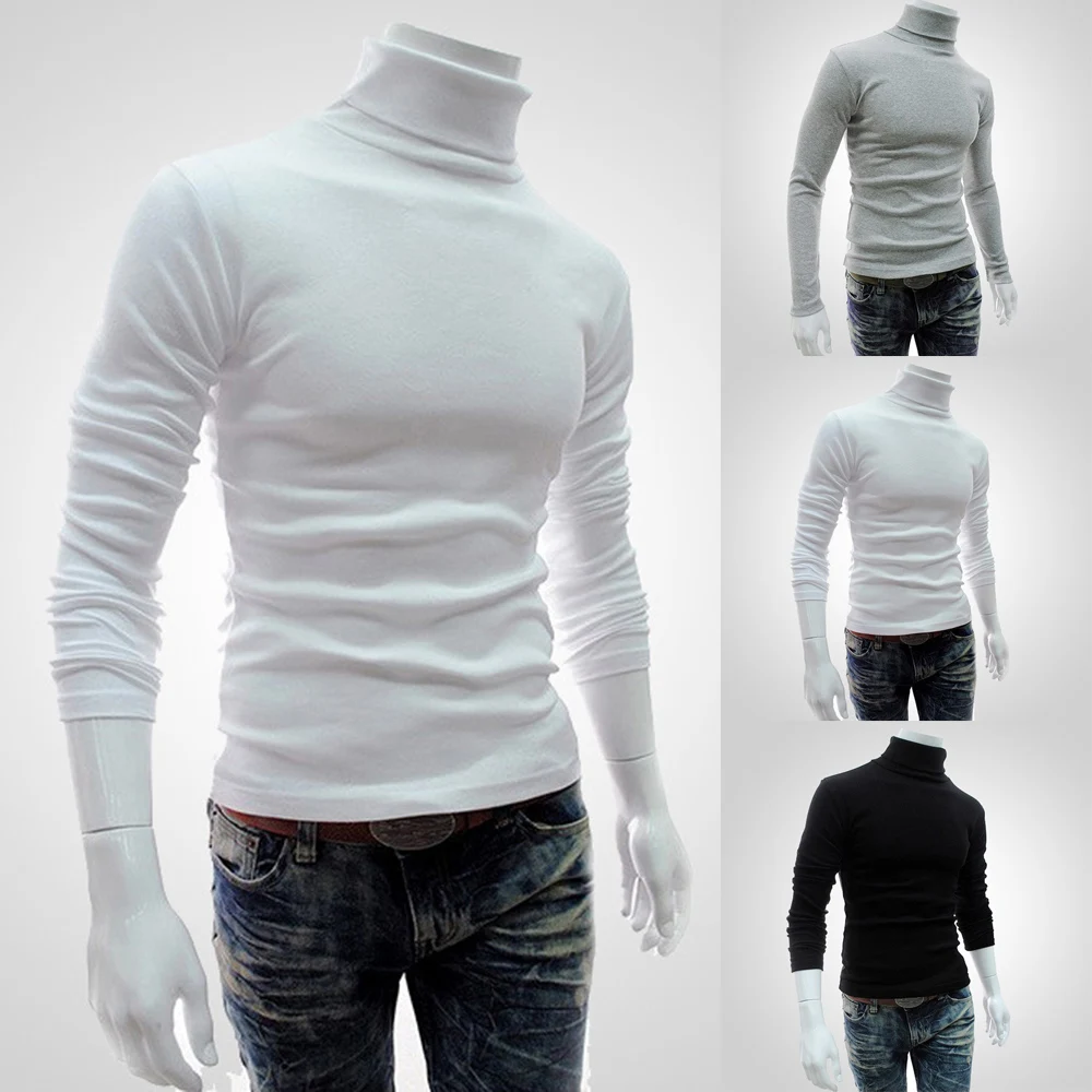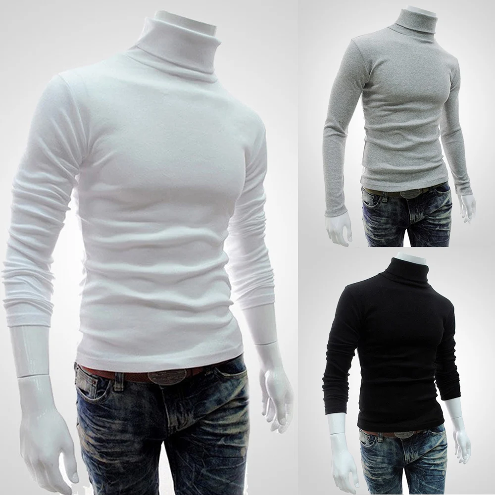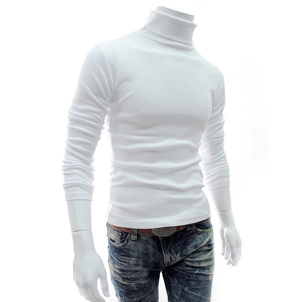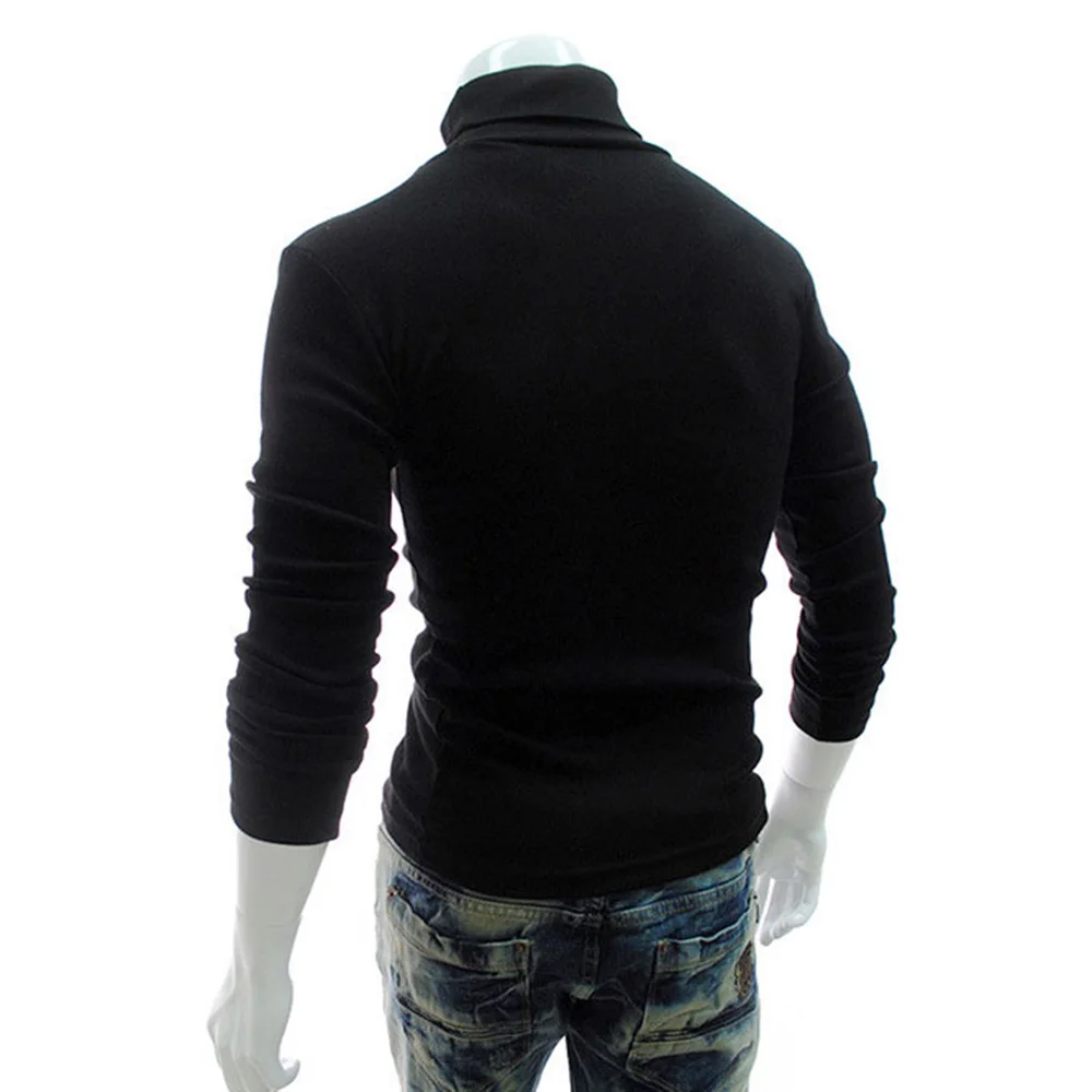 * Описание товара: мужская повседневная тонкая водолазка с длинным рукавом, пуловер, футболка, однотонный цвет
