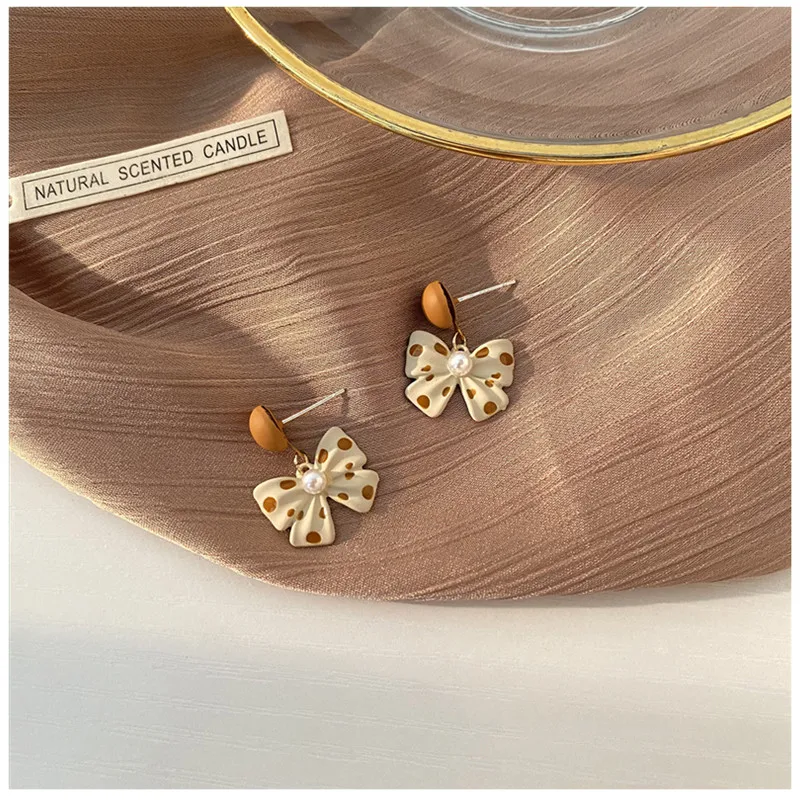 Корейские модные украшения, серьги для женщин, оранжевые нежные серьги в горошек с бантом, осень и зима, новые высококачественные серьги-гвоздики