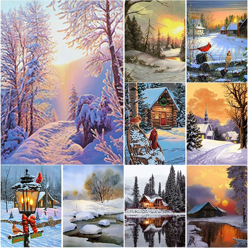 Алмазная живопись 5D "сделай сам", Снежная сцена, алмазная вышивка,...