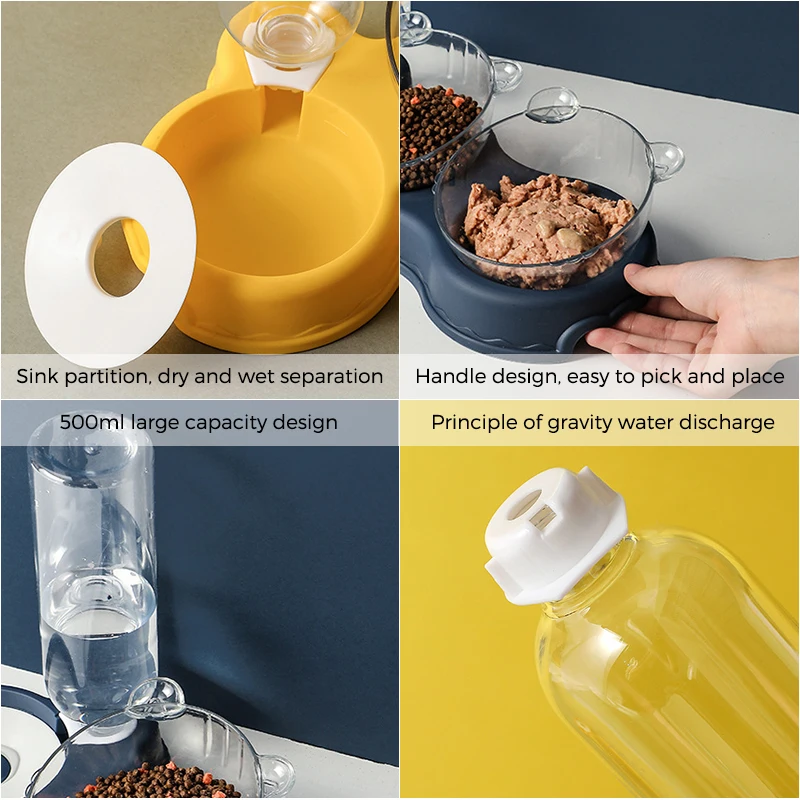 Двойные миски для домашних животных, собак, кошек, с водяной бутылкой, автоматический контейнер для еды, воды, собак, кошек, еды, питьевой воды, контейнер для еды