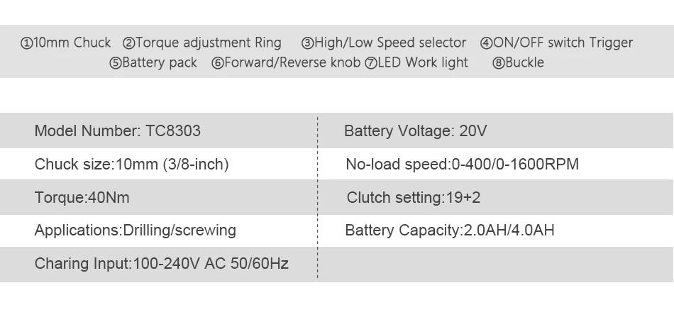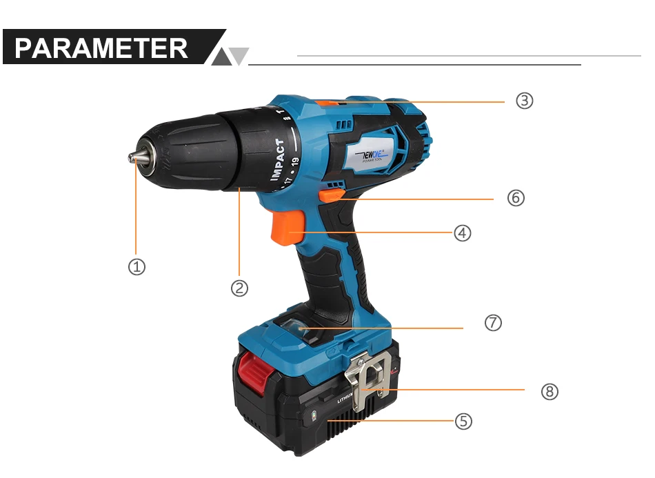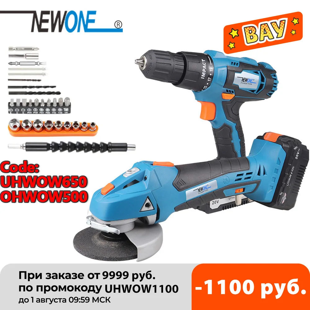 Беспроводная ударная дрель NEWONE, 20 в, литий-ионный аккумулятор, ...