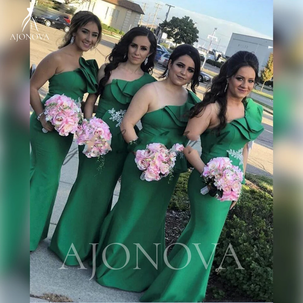Зеленое атласное платье подружки невесты женские платья на одно плечо для женщин 2022 Элегантное свадебное вечернее платье Русалка для подружек невесты официальное
