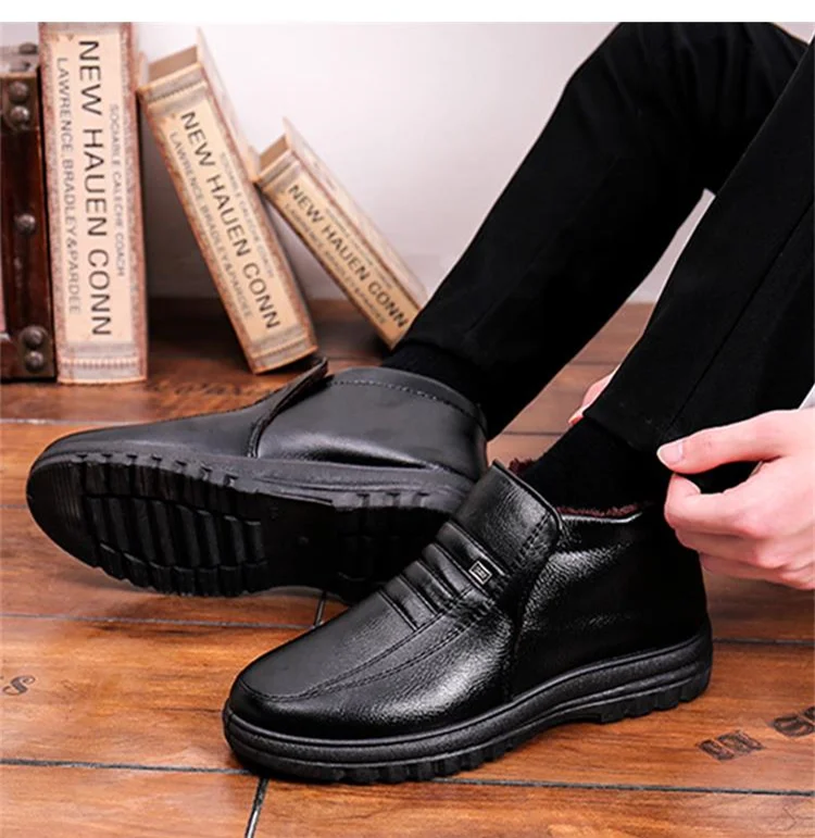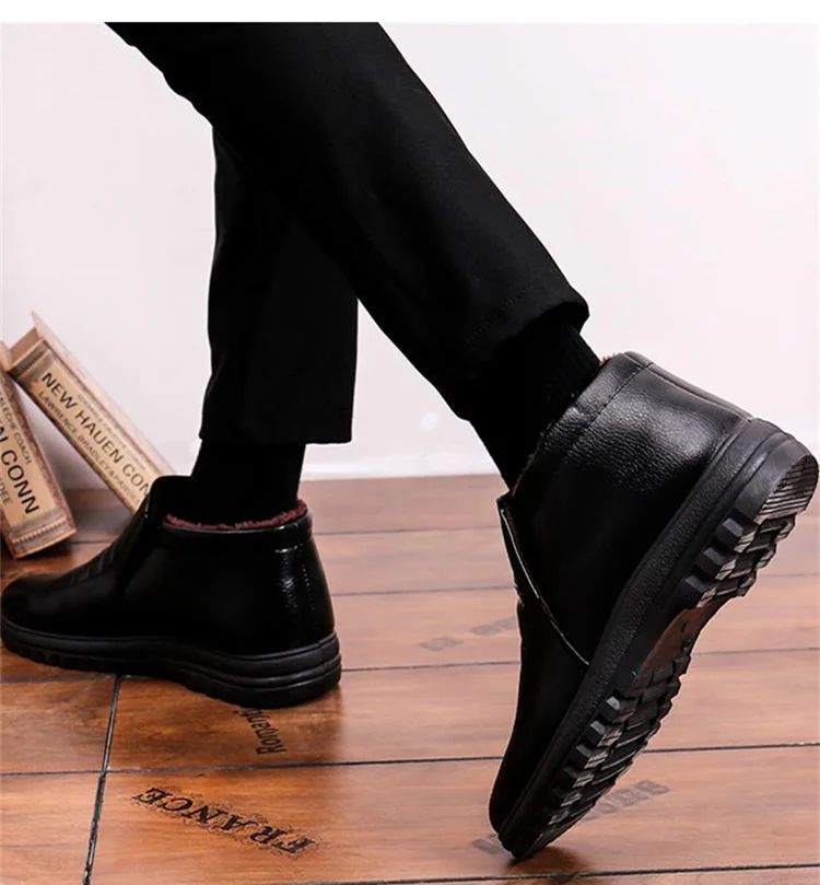 Мужские рабочие ботинки, теплые плюшевые ботинки, мягкая искусственная кожа, удобные уличные кроссовки
