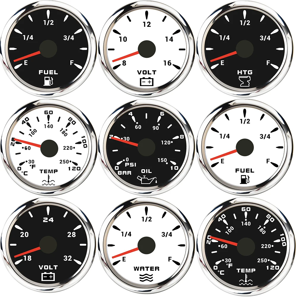 Датчик уровня воды и топлива, судовой вольтметр, 7 цветов, подсветка 52 мм, 0-190 Ом, 240-33 Ом, HTG, счетчик сточных водкв. Дюйм, температура воды, Масляный Пресс