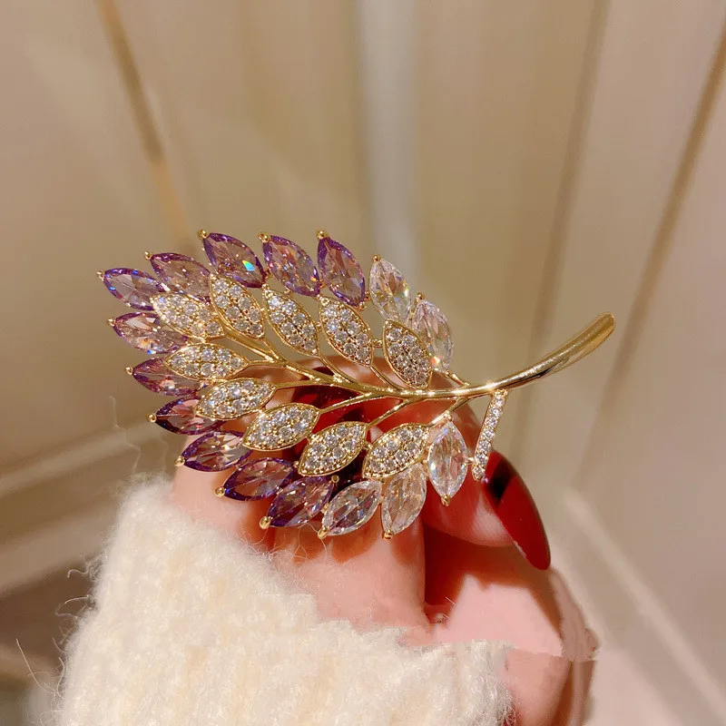 FXLRY элегантная градиентная фиолетовая инкрустированная фианитами брошь в форме листа для женщин модные ювелирные изделия аксессуары