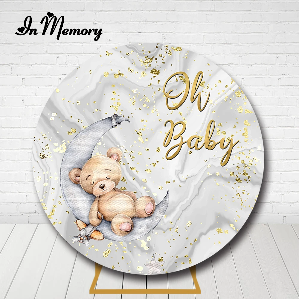 Золотистый блестящий Мраморный медведь InMemory, Круглый фон для фотосъемки с надписью Oh Baby Shower новорожденные дети, первый день рождения, Круглый фон
