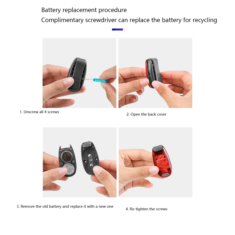 ПортативныйШаги замены батареи, Бесплатная отвертка, сменные батареи могут быть переработаны1. Отвинтите все 4 винта2. Откройте заднюю крышку3. Снимите старый аккумулятор и замените его на новый4. Повторно Затяните винты