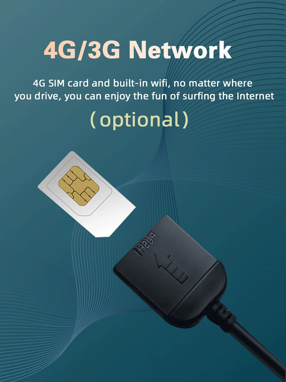 Благодаря sim-карте 4G и встроенному Wi-Fi вы можете наслаждаться серфингом в Интернете независимо от того, где вы едете, возможность серфинга в Интернете/прослушивания музыки/просмотра фильмов. Перед включением устройства вставьте sim-карту.