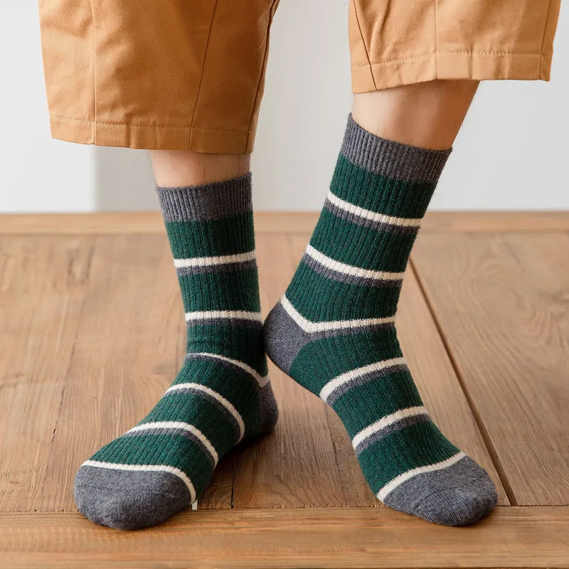 Новинка, осенне-зимние мужские длинные носки, кашемировые шерстяные теплые длинные деловые мужские носки, модные дизайнерские полосатые смешные короткие носки