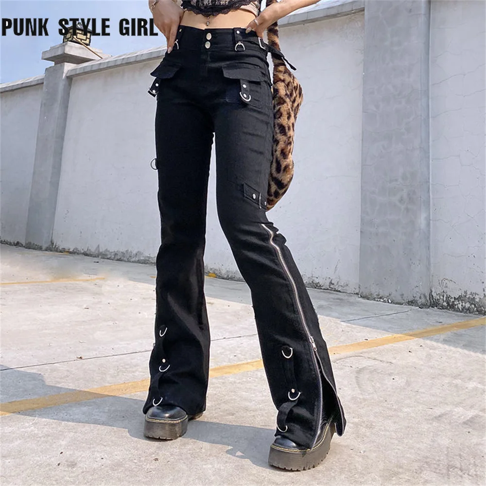 cyber y2k jeanswomen techwear pants