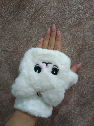 Зимние меховые перчатки с мехом кролика кота пушистые рукавицы без пальцев женские плюшевые теплые перчатки для девочек мягкие варежки для сенсорного экрана