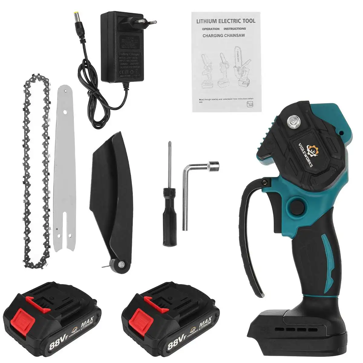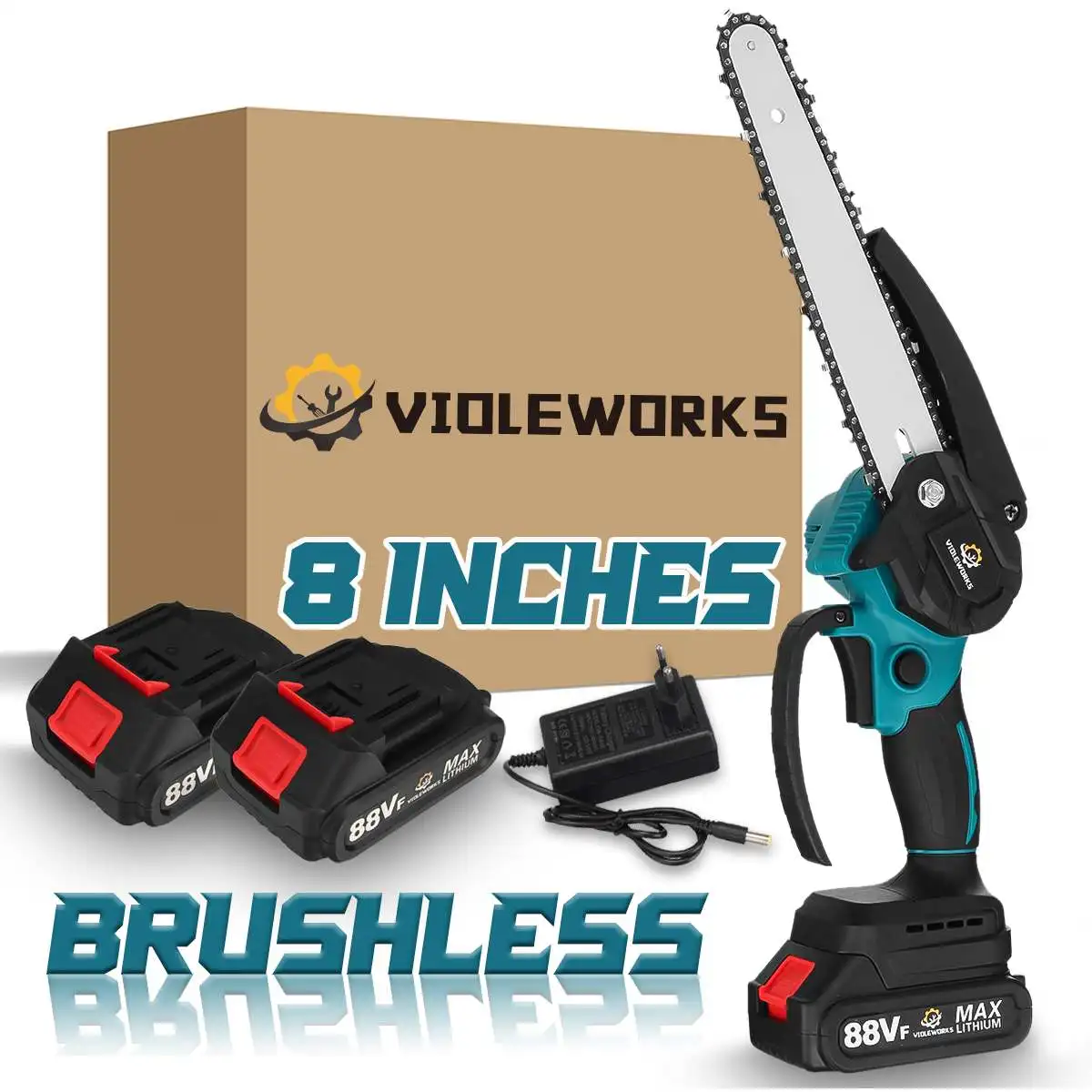 Бесщеточный 8 дюймов электрическая пила бензопила для батареи Makita 18vПримечание: тело также подходит для Makita 18V Батарея!Спецификация:Бренд: VIOLEWORKSМотор: бесщеточныйДлина направляющей пластины: 8 дюймовСкорость цепи: 5 м/сАккумулятор: 10000 мАчНапряжение: 88VFМощность: 3000 ВтЦепь: быстрая регулировкаМатериал: металлическая стальная цепьОпциональный узор: Без аккумулятора/1 комплект батарей/2 комплекта батарей