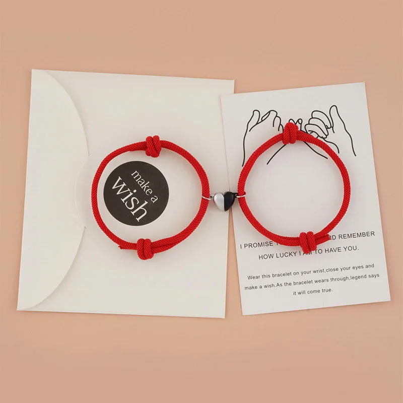 2 шт. Новый магнитный браслет в форме сердца для пар, плетеная вере...