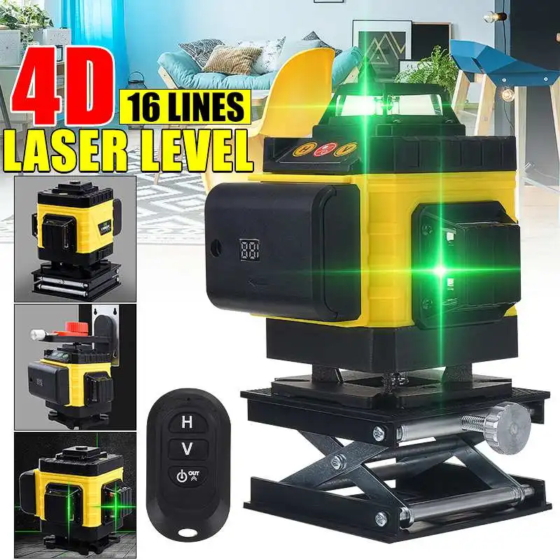 Особенности:-4D 16 линейный лазерный провод для точного позиционирования-Светодиодный дисплей-Самонивелирующаяся система-Гибкость и стабильность-Зарядка с помощью-Пульт дистанционного управления-Вращающееся на 360 ° основание с тонкой ручкой настройки, быстро идентифицирует цель-Водонепроницаемость, износостойкость и изысканность, простота в эксплуатации-Утолщенное металлическое основание обеспечивает стабильную поддержку и ударопрочность, ударопрочность-Легко носить с собой чехол, обеспечивая быструю и удобную мобильность и хранение-Широкое применение для вспомогательной фиксации плитки, украшения стен, фиксации напольной плитки, лестничных поручней и многого другогоХарактеристики:-Светильник: зеленый светильник-Линия: 16/12/8 линия-Лазерный светильник: 360 ° x4, 16 линий-Подъемная платформа: 25-90 мм-Расстояние дистанционного управления: 10 м-Лазерный светильник источник: длина волны лазера 808nm, зеленый светильник-Горизонтальная/Вертикальная Точность: ± 1,5 мм/7 м-Диапазон автоматического выравнивания: ± 3 °-Класс водонепроницаемости: IP-54-Рабочий диапазон: About20-35m в диаметре-Зеленый светильник, Рабочая температура: -10 ℃ ~ 50 ℃-Непрерывное время работы: около 8 ~ 12 часов-Мощность: AC 110-240 в зарядное устройство-Емкость аккумулятора: 6000 мАч