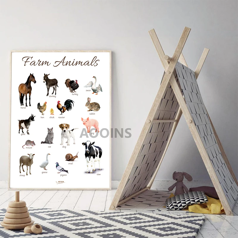 Животные на ферме, Художественная печать, Домашнее обучение, искусство, холст, живопись, детская комната, Декор