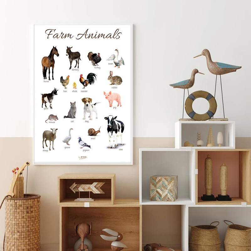 PurposeFarm Animals Educational Art Painting Picture Home Decor