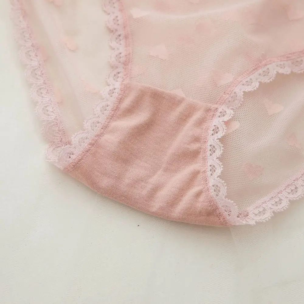 Японские милые трусики со средней талией, женские кружевные сетчатые хлопковые трусики с бантом, женские сетчатые хлопковые трусики с промежностью
