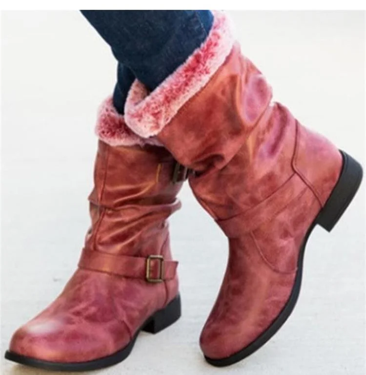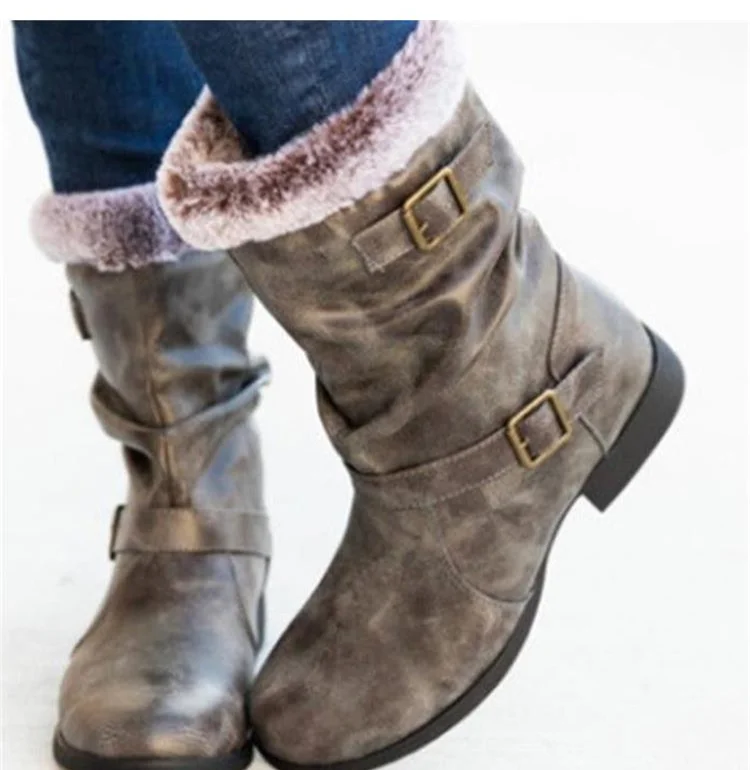 Ботинки женские с пряжкой, теплые плюшевые ботильоны, Классическая ...