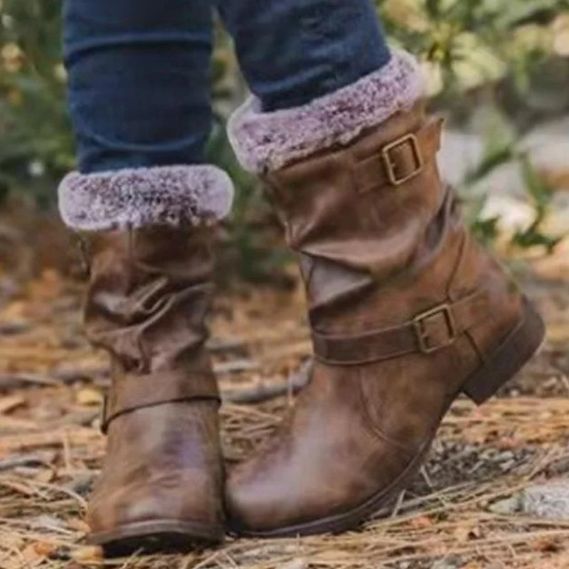Женские ботинки в стиле ретро, теплые меховые сапоги до середины икры, модная удобная обувь, большие размеры, Осень-зима