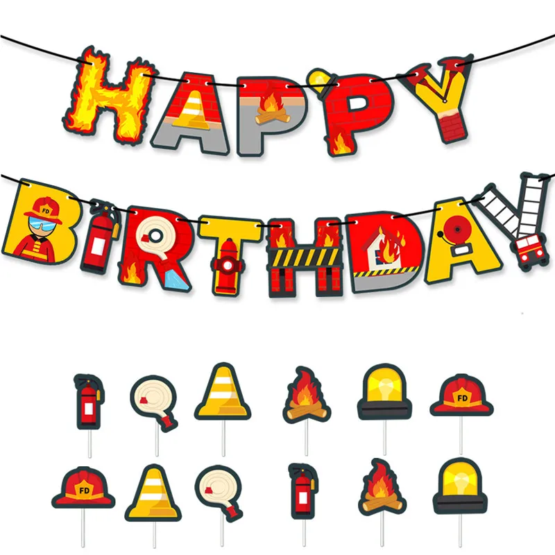 Пожарная гирлянда с пожарным двигателем, флажки для детей, украшени...