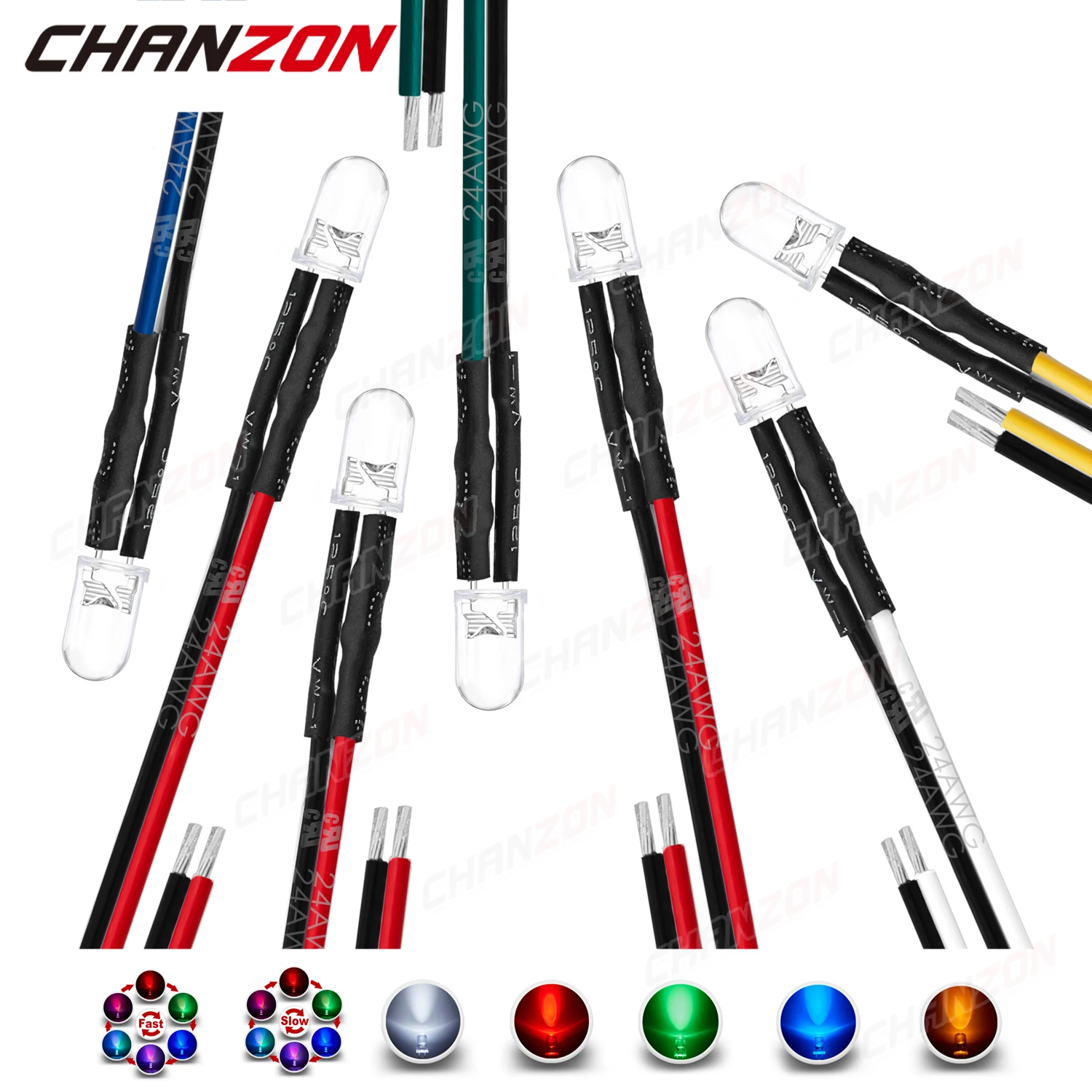 20 шт., 3 мм, 12 В, Предварительно смонтированные светодиоды, мигаю...