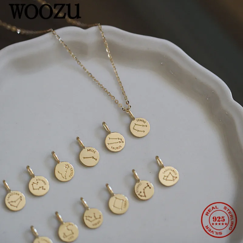 Ожерелье WOOZU с 12 созвездиями, подвеска из стерлингового серебра 925 пробы, цепочка с позолотой 14 карат, ожерелья для женщин 2021, французские ювелирные изделия в стиле панк