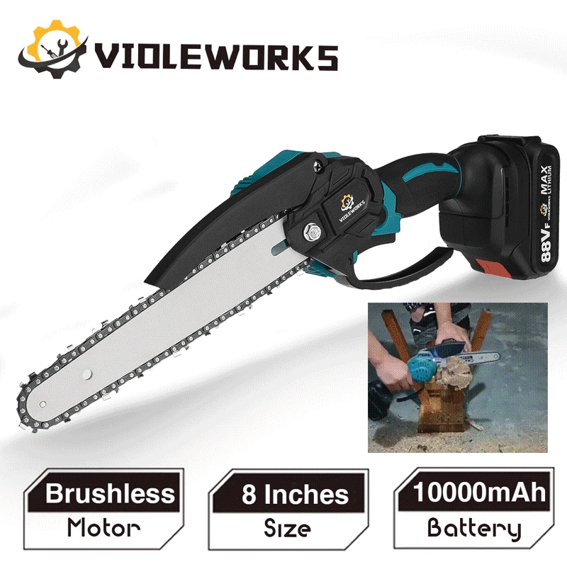 Бесщеточный 8 дюймов электрическая пила бензопила для батареи Makita 18vПримечание: тело также подходит для Makita 18V Батарея!Спецификация:Бренд: VIOLEWORKSМотор: бесщеточныйДлина направляющей пластины: 8 дюймовСкорость цепи: 5 м/сАккумулятор: 10000 мАчНапряжение: 88VFМощность: 3000 ВтЦепь: быстрая регулировкаМатериал: металлическая стальная цепьОпциональный узор: Без аккумулятора/1 комплект батарей/2 комплекта батарей