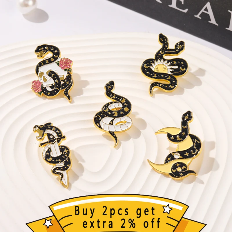 Металлическая эмалированная брошь в виде звезды, Луны, змеи, цветка