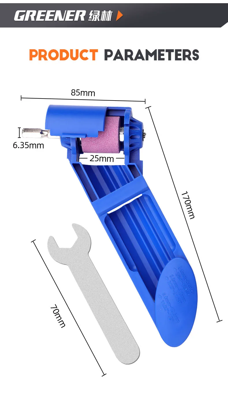 Шлифовальный круг, используемый в настоящее время в продукте, является коричневым корундовым шлифовальным колесом, поэтому продукт в основном используется для шлифовальных железных сверл. Другие сверла высокой твердости не подходят для использования, и потеря будет относительно большой.