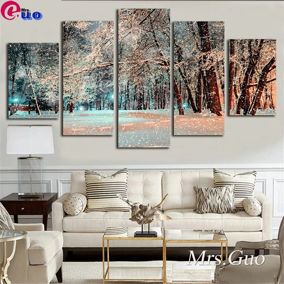 5D DIY Алмазная картина 5 шт. Снежный лес пейзаж Вышивка крестиком полностью квадратная круглая Алмазная вышивка мозаика домашний декор