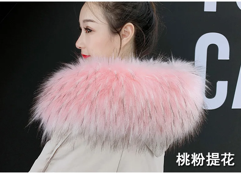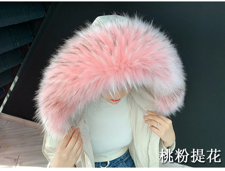 2021 100% Высокое качество воротник из искусственного меха енота женские куртки капюшон роскошный меховой декор Мужская детская зимняя одежда аксессуары розовый