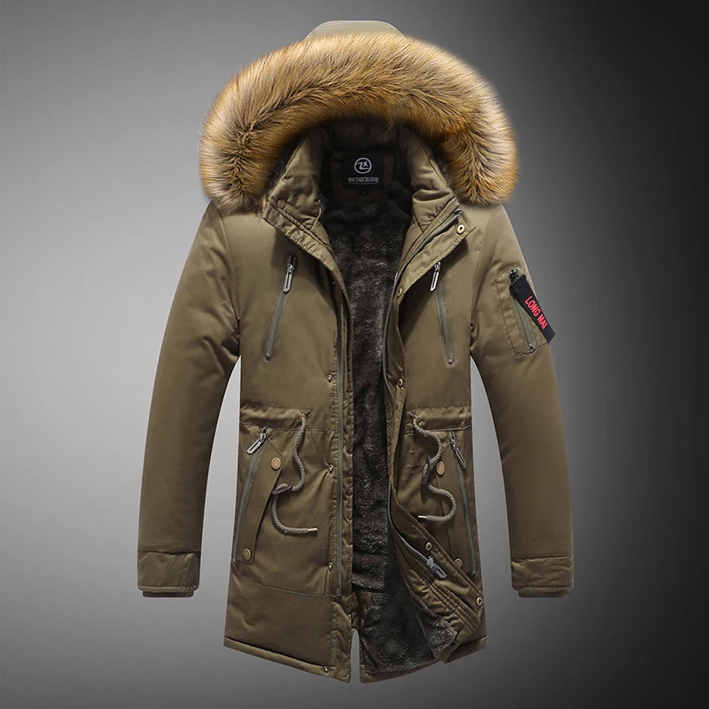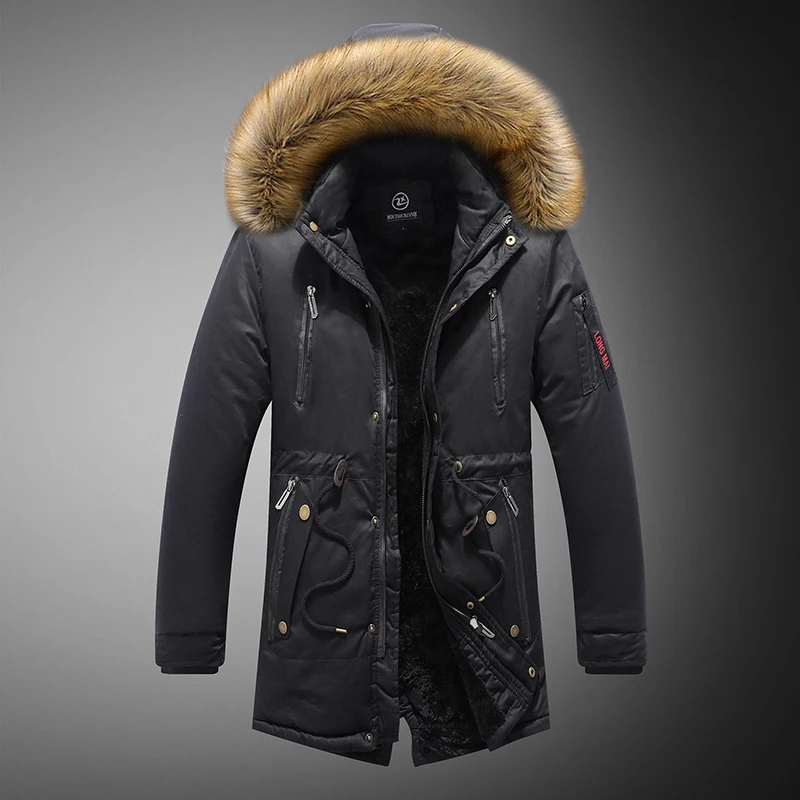 Мужская однотонная парка средней длины, Высококачественная Мужская ...