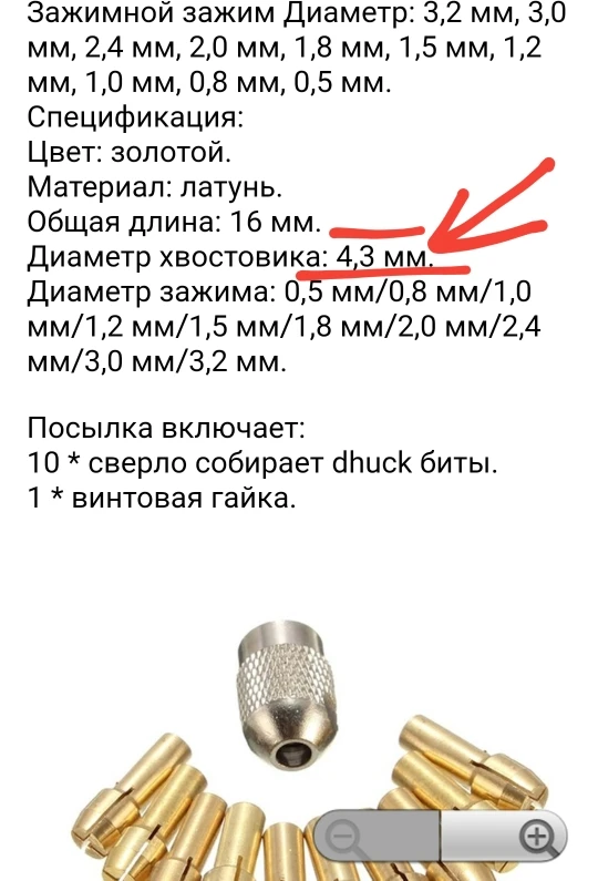 Патрон для дрели, 10 шт., 0,5-3,2 мм, из латуни, Цанга 4,3 мм, хвос...